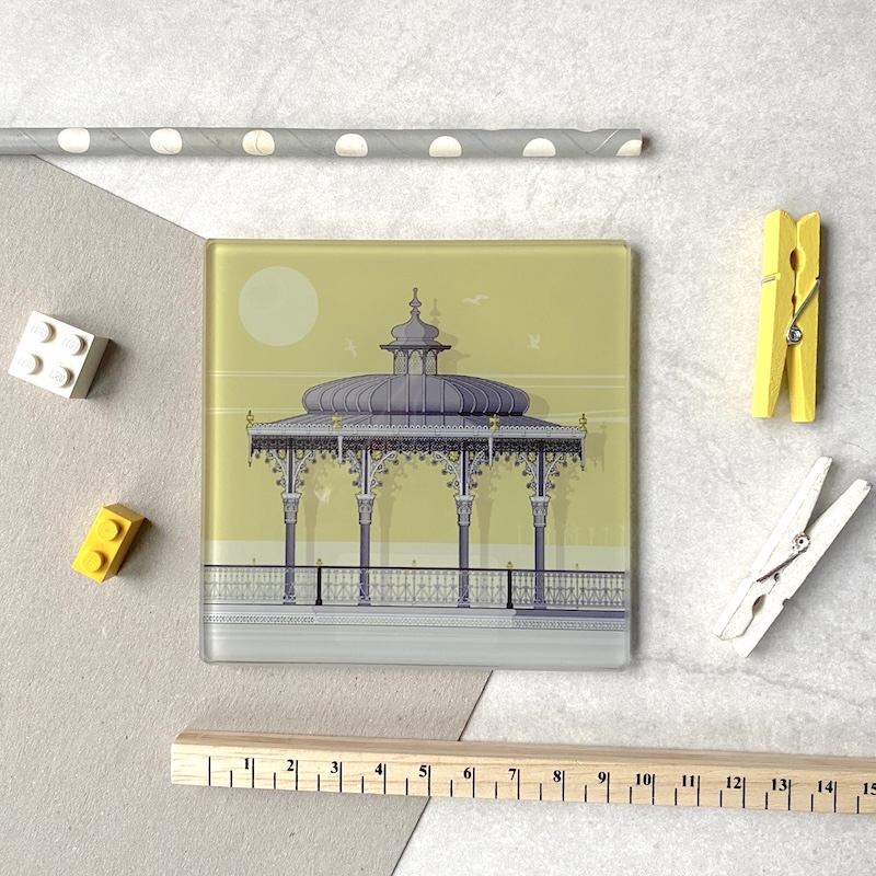 These beautifully made, heavyweight glass coasters feature a stunning illustration of the beautiful Victorian bandstand on Brighton seafront. These are the ideal gift for the architecture lover in your life, or if you love Brighton or live in the area. There are 10 designs available in the Glass Coasters section and you can save a bit of money if you choose ‘2 Coasters’ from the list.