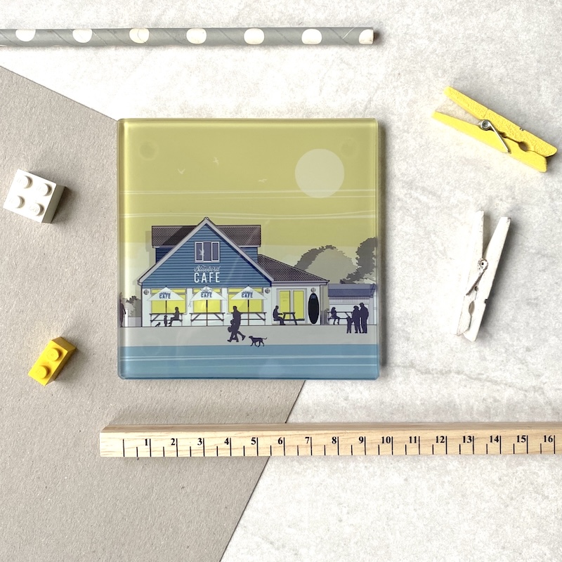 These beautifully made, heavyweight glass coasters feature a stunning illustration of the popular cafe in Ferring, West Sussex. These are the ideal gift for the architecture lover in your life, or if you love Ferring or live in the area. There are 10 designs available in the Glass Coasters section and you can save a bit of money if you choose ‘2 Coasters’ from the list.