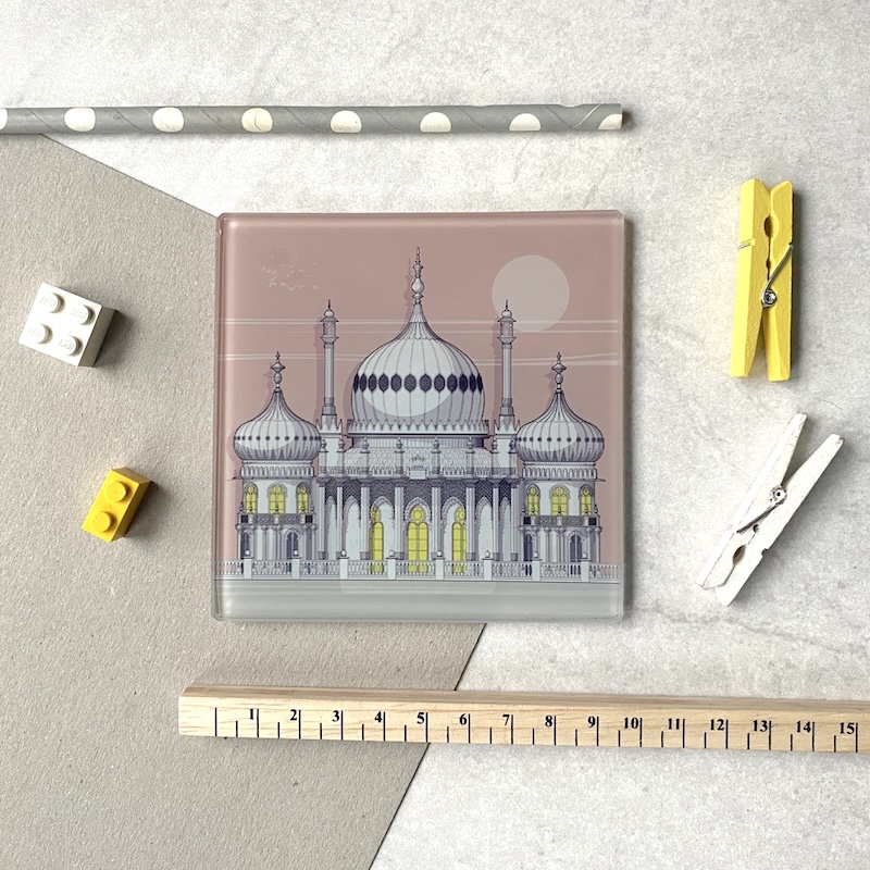 These beautifully made, heavyweight glass coasters feature a stunning illustration of the beautiful Regency Palace in Brighton. These are the ideal gift for the architecture lover in your life, or if you love Brighton or live in the area. There are 10 designs available in the Glass Coasters section and you can save a bit of money if you choose ‘2 Coasters’ from the list.