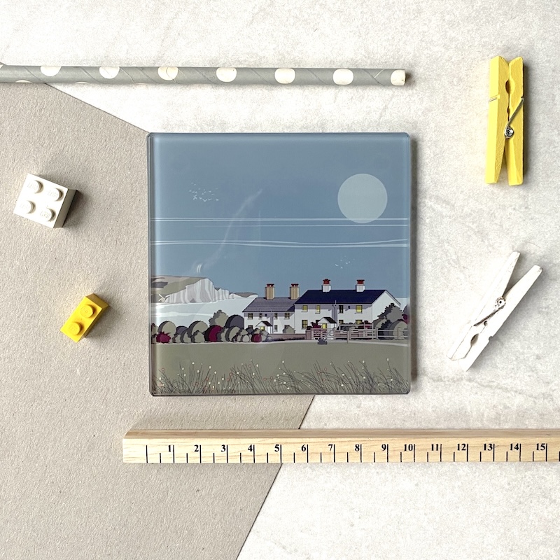 These beautifully made, heavyweight glass coasters feature a stunning illustration of the beautiful coastguard cottages overlooking Cuckmere Haven and the Seven Sisters cliffs. These are the ideal gift for the architecture lover in your life, or if you love Sussex or live in the area. There are 10 designs available in the Glass Coasters section and you can save a bit of money if you choose ‘2 Coasters’ from the list.