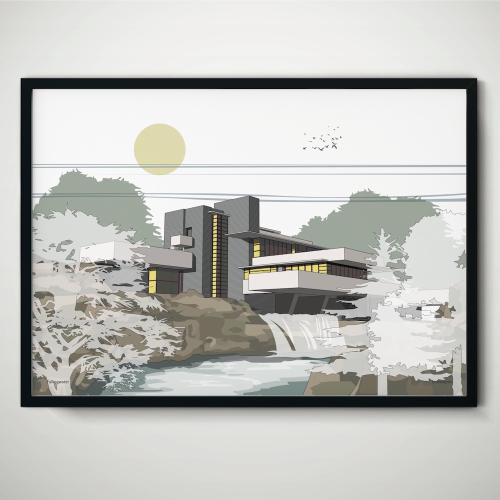The elegant Fallingwater giclee print is part of our brand new Dwellings Collection. The print comes in a choice of 2 sizes so by choosing from the options below, you can get the perfect print for your home.