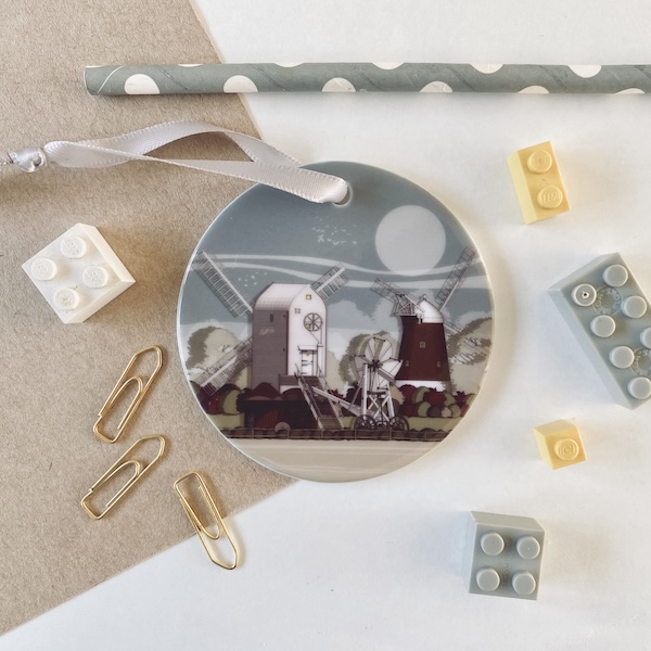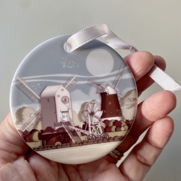 This porcelain hanging ornament beautifully captures the iconic pair of windmills in West Sussex. Hang it on your tree or display it as a cherished keepsake, and let this ornament become a part of your holiday tradition. Other designs available, see other listings.