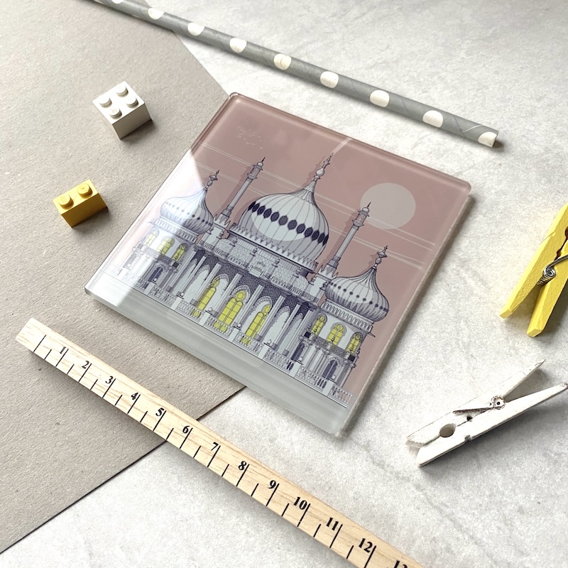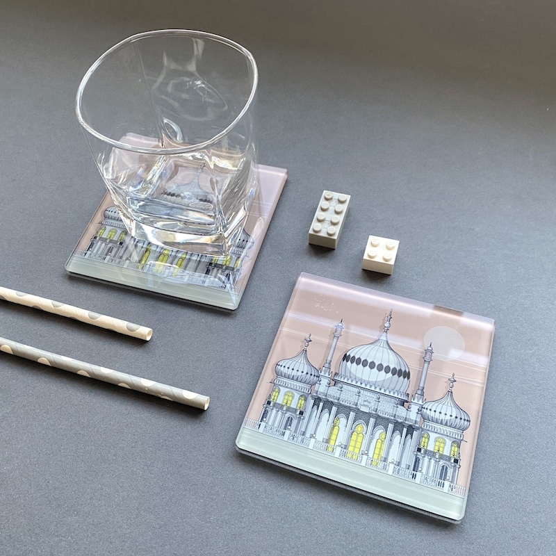 These beautifully made, heavyweight glass coasters feature a stunning illustration of the beautiful Regency Palace in Brighton. These are the ideal gift for the architecture lover in your life, or if you love Brighton or live in the area. There are 10 designs available in the Glass Coasters section and you can save a bit of money if you choose ‘2 Coasters’ from the list.