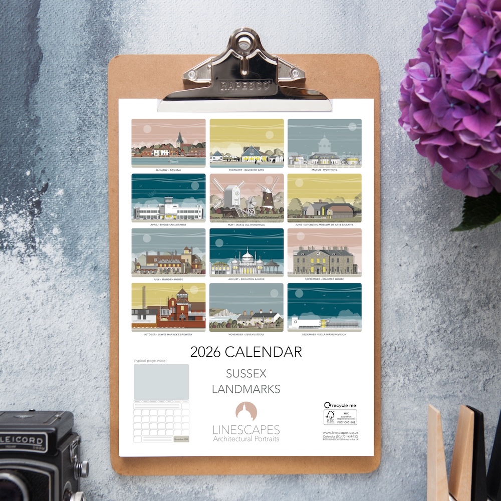 The Sussex Landmarks 2026 Calendar features 12 different illustrations of some of Sussex’s most iconic and architecturally significant buildings.