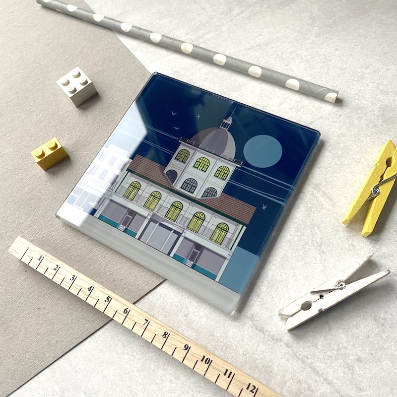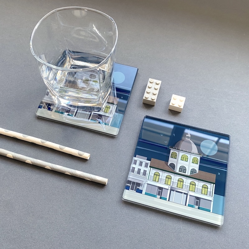 These beautifully made, heavyweight glass coasters feature a stunning illustration of the iconic Edwardian Cinema in Worthing, West Sussex. These are the ideal gift for the architecture lover in your life, or if you love buildings or live in the area. There are 10 designs available in the Glass Coasters section and you can save a bit of money if you choose ‘2 Coasters’ from the list.