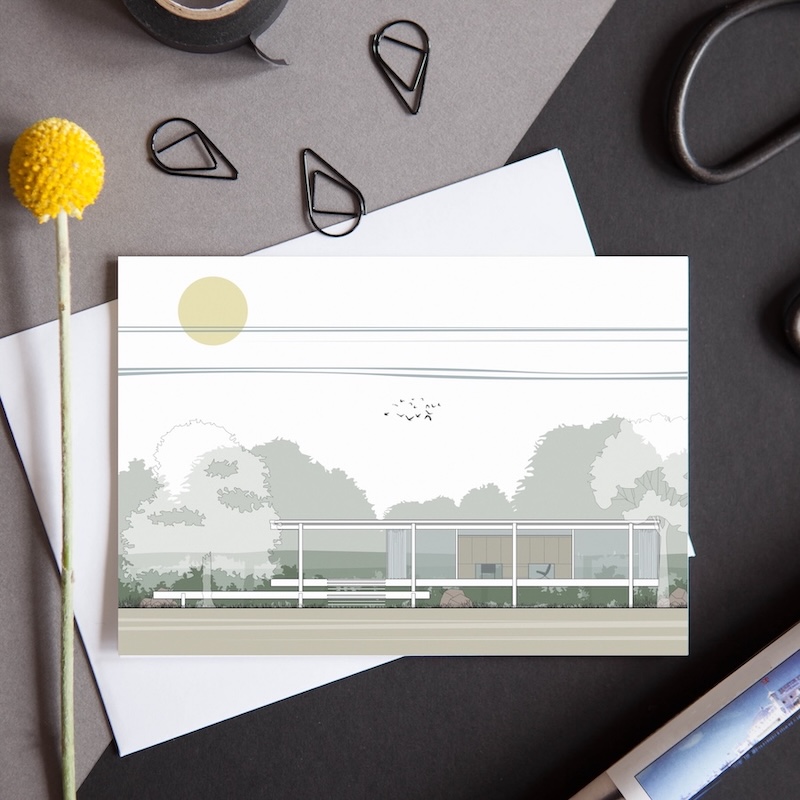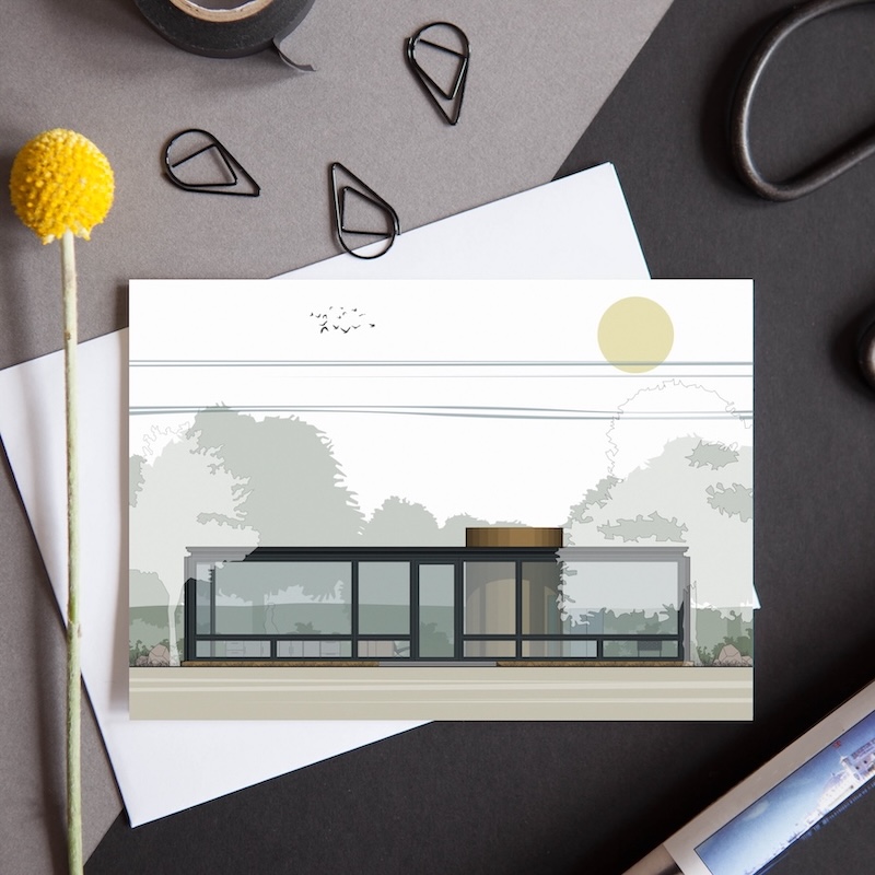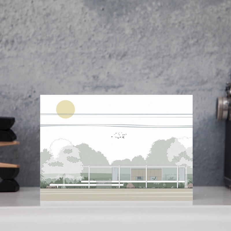 Mies van Der Rohe’s Farnsworth House card is part of our brand new ‘Dwellings’ Collection. These cards feature illustrations of iconic 20th Century homes and are the perfect gift for the architecture lover in your life, a memento of a trip to this stunning building, or simply for you to keep. Matching giclee print available.