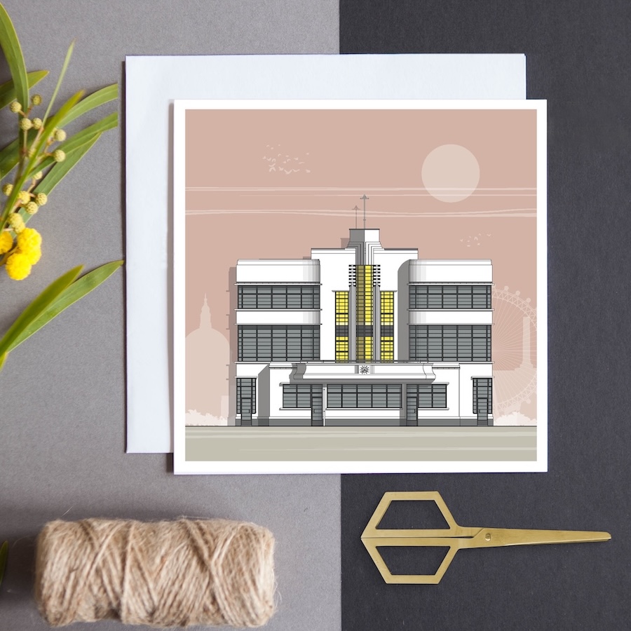 The new Hoover Building card is part of my new card range which feature a beige ground strip and are printed on 300gsm Superfine matt paper, to match my panoramic cards. These cards are the perfect gift for the architecture lover in your life, or a memento of a trip to London, or simply for you to keep.