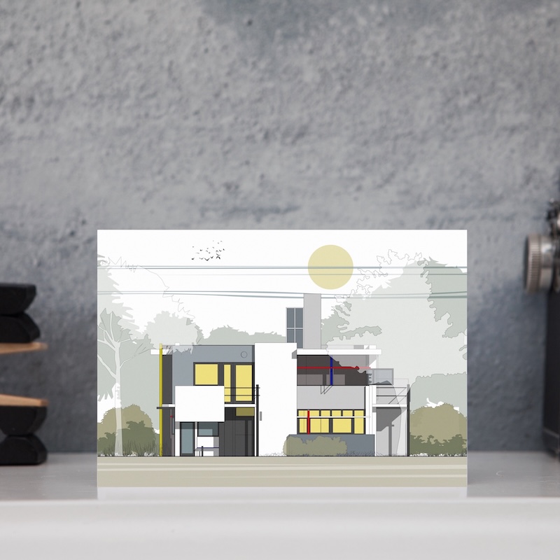 The Rietveld House card is part of our brand new ‘Dwellings’ Collection. These cards feature illustrations of iconic 20th Century homes and are the perfect gift for the architecture lover in your life, a memento of a trip to this stunning building, or simply for you to keep.