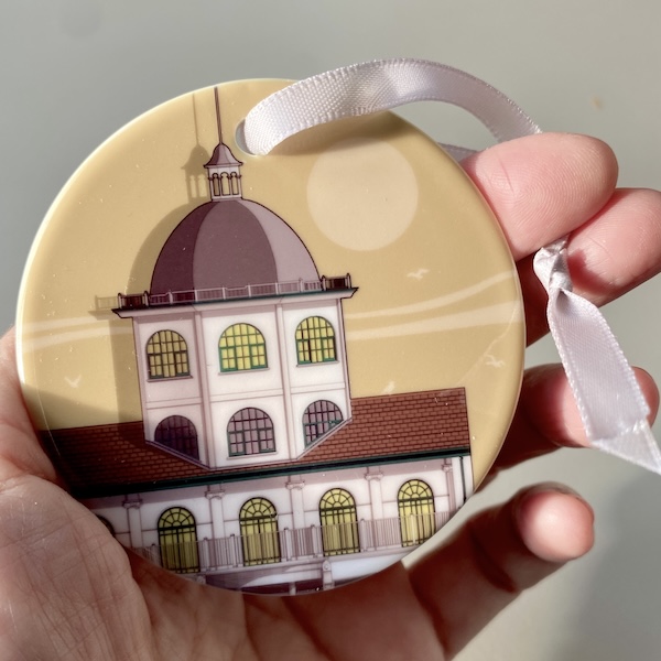 The Worthing Dome hanging ornament beautifully captures the iconic Worthing Dome Cinema on a Gold background. Hang it on your tree or display it as a cherished keepsake, and let this iconic porcelain ornament become a part of your holiday tradition. Whether you’re a Worthing local or a visitor who fell in love with the city, this Christmas decoration is a beautiful way to celebrate this city’s rich cultural legacy. Other designs available, see other listings.